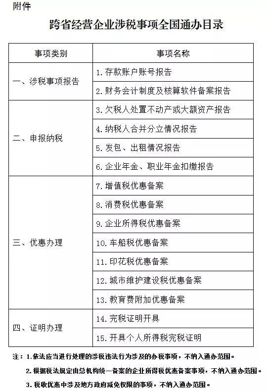 附件:跨省經(jīng)營企業(yè)涉稅事項全國通辦目錄