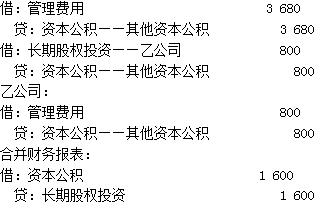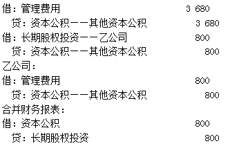 合并財(cái)務(wù)報(bào)表中的結(jié)果為本期應(yīng)確認(rèn)管理費(fèi)用和資本公積=3 680+800=4 480(萬元),