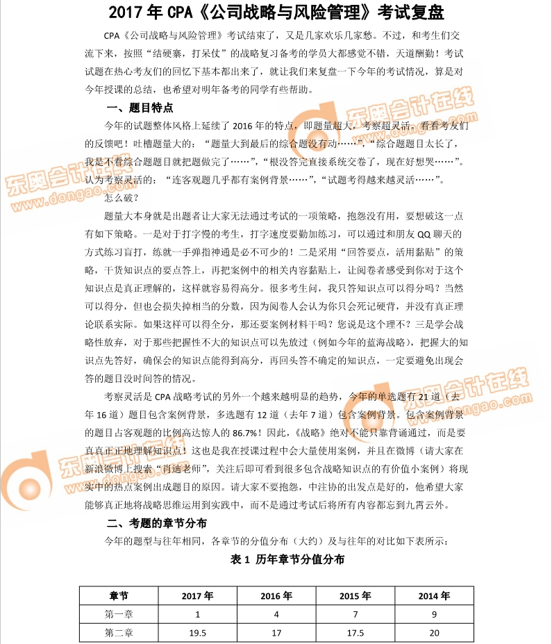 考后點(diǎn)評(píng):東奧攜手肖迪解析2017注會(huì)戰(zhàn)略
