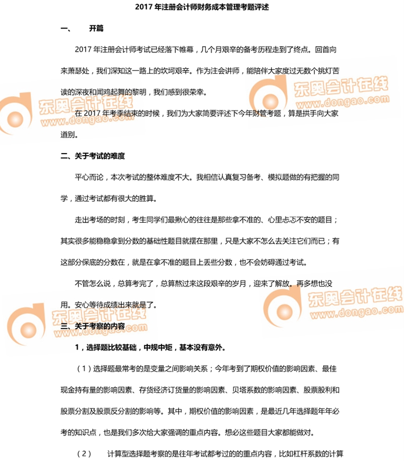 考后點(diǎn)評:東奧攜手鄭曉博解析2017注會財(cái)管