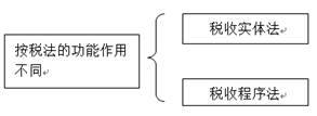 1.按照稅法的功能作用不同,分為稅收實體法和稅收程序法。