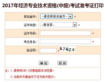 貴州省2017年中級經濟師準考證打印入口已開通