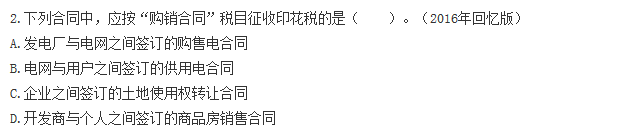 【解析】選項(xiàng)AB:對發(fā)電廠與電網(wǎng)之間、電網(wǎng)與電網(wǎng)之間簽訂的購售電合同按購銷合同征收印花稅。電網(wǎng)與用戶之間簽訂的供用電合同不屬于印花稅列舉征稅的憑證,不征印花稅。選項(xiàng)CD:土地使用權(quán)轉(zhuǎn)讓合同和商品房銷售合同按產(chǎn)權(quán)轉(zhuǎn)移書據(jù)稅目繳納印花稅。