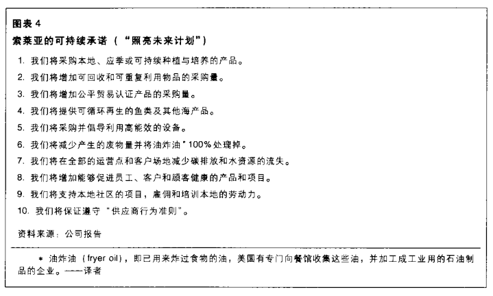 2009年。艾倫公開宣布了索萊亞的“照亮未來計劃”,這樣一組計劃由索萊亞必須遵守的10項可持續(xù)承諾構(gòu)成(見圖表4)。