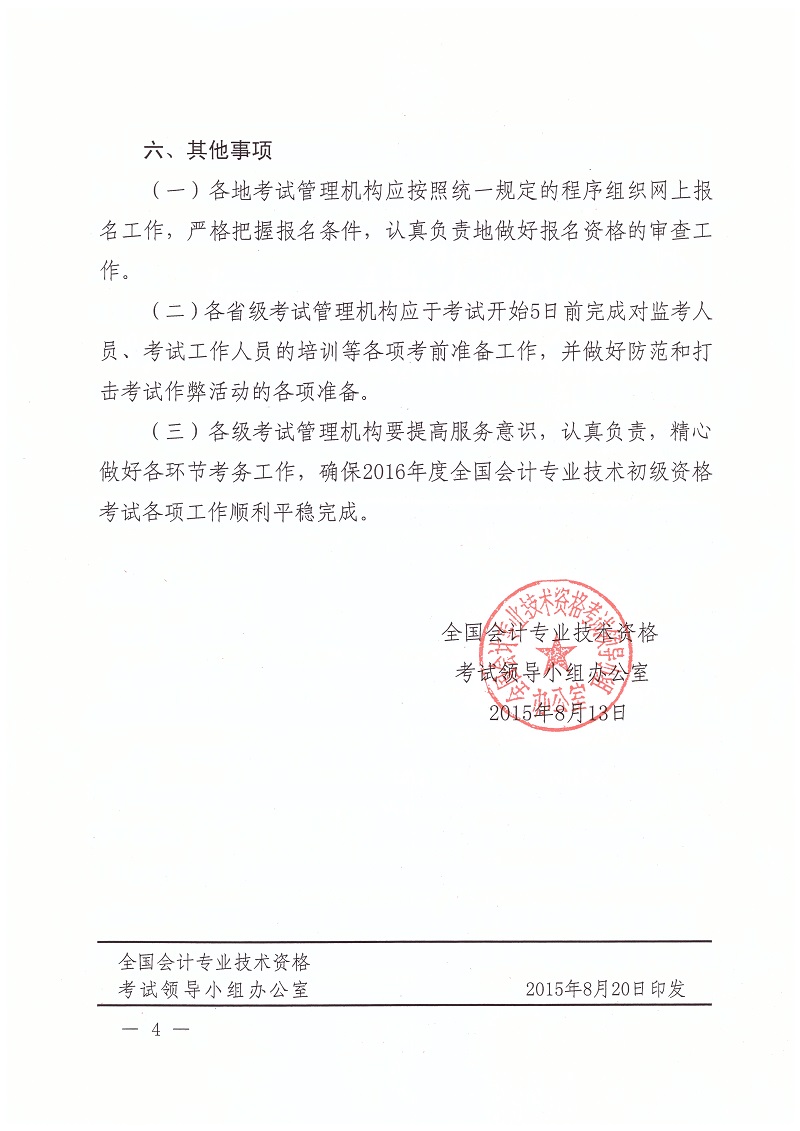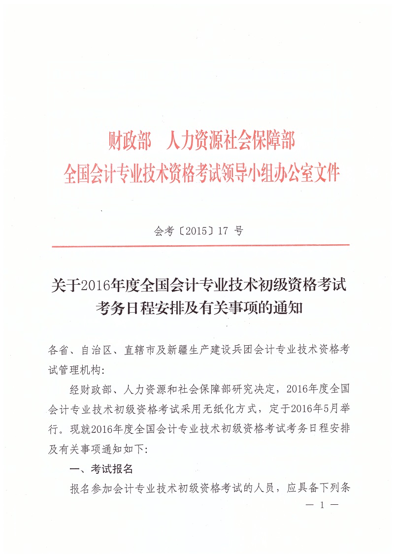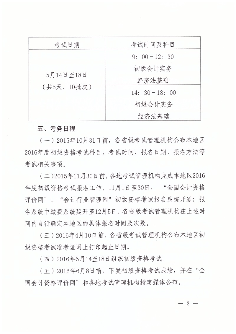關(guān)于2016年度全國(guó)會(huì)計(jì)專業(yè)技術(shù)初級(jí)資格考試考務(wù)日程安排及有關(guān)事項(xiàng)的通知
