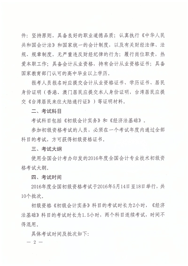 2016初級(jí)會(huì)計(jì)職稱考試報(bào)名考務(wù)日程安排及有關(guān)事項(xiàng)通知