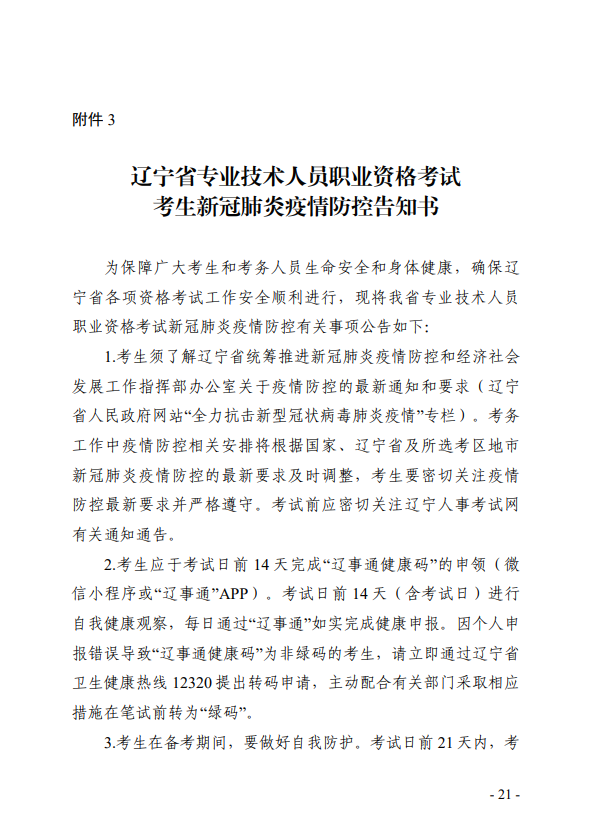 遼寧省專業(yè)技術(shù)人員職業(yè)資格考試考生新冠肺炎疫情防控告知書3