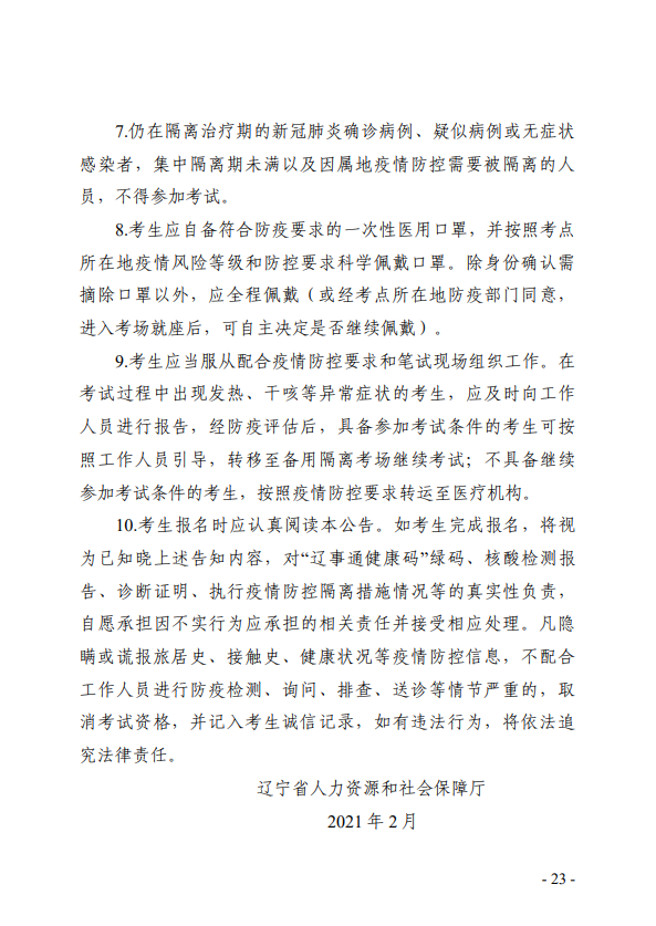 遼寧省專業(yè)技術(shù)人員職業(yè)資格考試考生新冠肺炎疫情防控告知書
