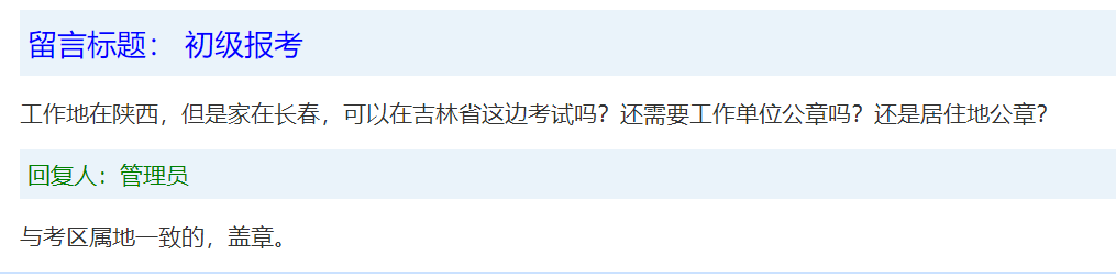 報考人員只能在現(xiàn)工作單位所在地、學籍所在地或居住地進行報名,以吉林省為例,考生可在工作地或者戶籍所在地報考初級,只要蓋與考區(qū)屬地一致的章即可。