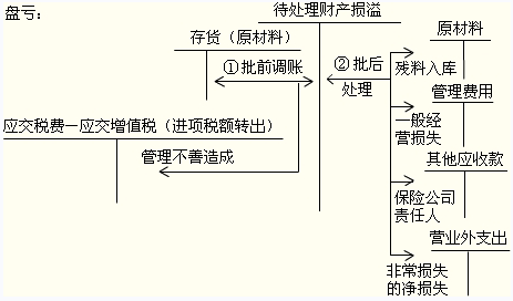 存貨清查發(fā)生盤盈和盤虧通過"待處理財產損溢"核算,期末處理后該賬戶無余額。核算時分兩步:第一步,批準前調整為賬實相符;第二步,批準后結轉處理。