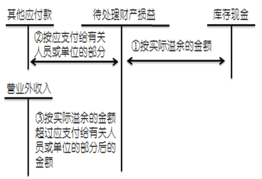 2.如為現(xiàn)金溢余,屬于應(yīng)支付給有關(guān)人員或單位的,計(jì)入其他應(yīng)付款;屬于無(wú)法查明原因的,計(jì)入營(yíng)業(yè)外收入。