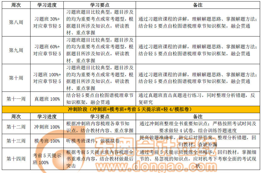 提示:本計(jì)劃表適用于考生百天通關(guān)學(xué)習(xí)使用,是從第一章節(jié)開始學(xué)習(xí)。如果提前報(bào)名學(xué)習(xí)的考生,可續(xù)按照基礎(chǔ)學(xué)習(xí)階段本周正常進(jìn)度備考。