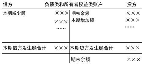 負(fù)債類和所有者權(quán)益類賬戶結(jié)構(gòu)用T型賬戶表示,如下圖所示。