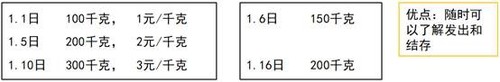 1.6日發(fā)出成本:(100×1+200×2+300×3+400×4)/(100+200+300+400)=3