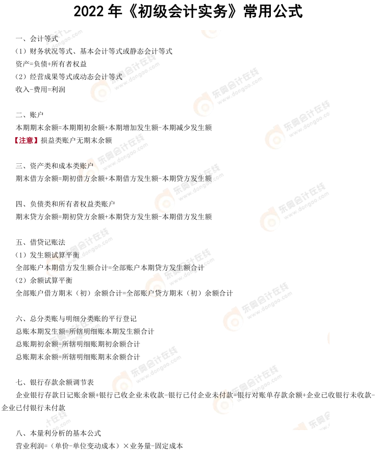 注:《初級(jí)會(huì)計(jì)實(shí)務(wù)》常用公式由東奧教研團(tuán)隊(duì)提供