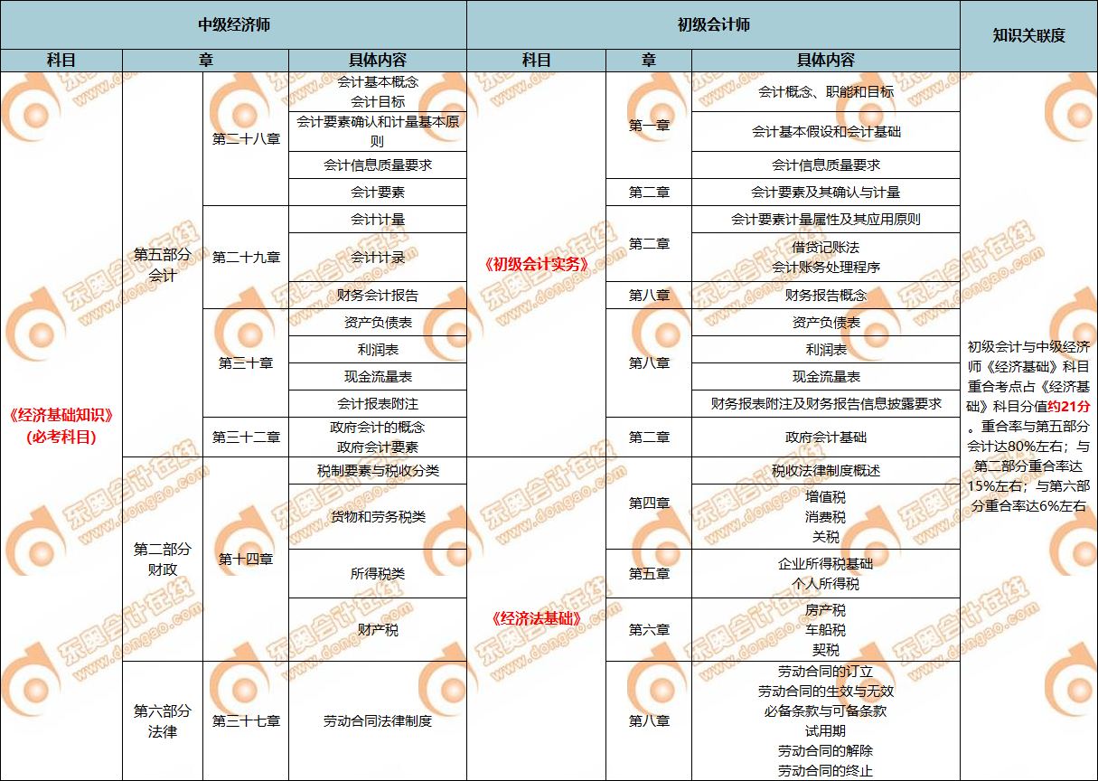 中級經(jīng)濟(jì)師與初級會計師的知識點對比1