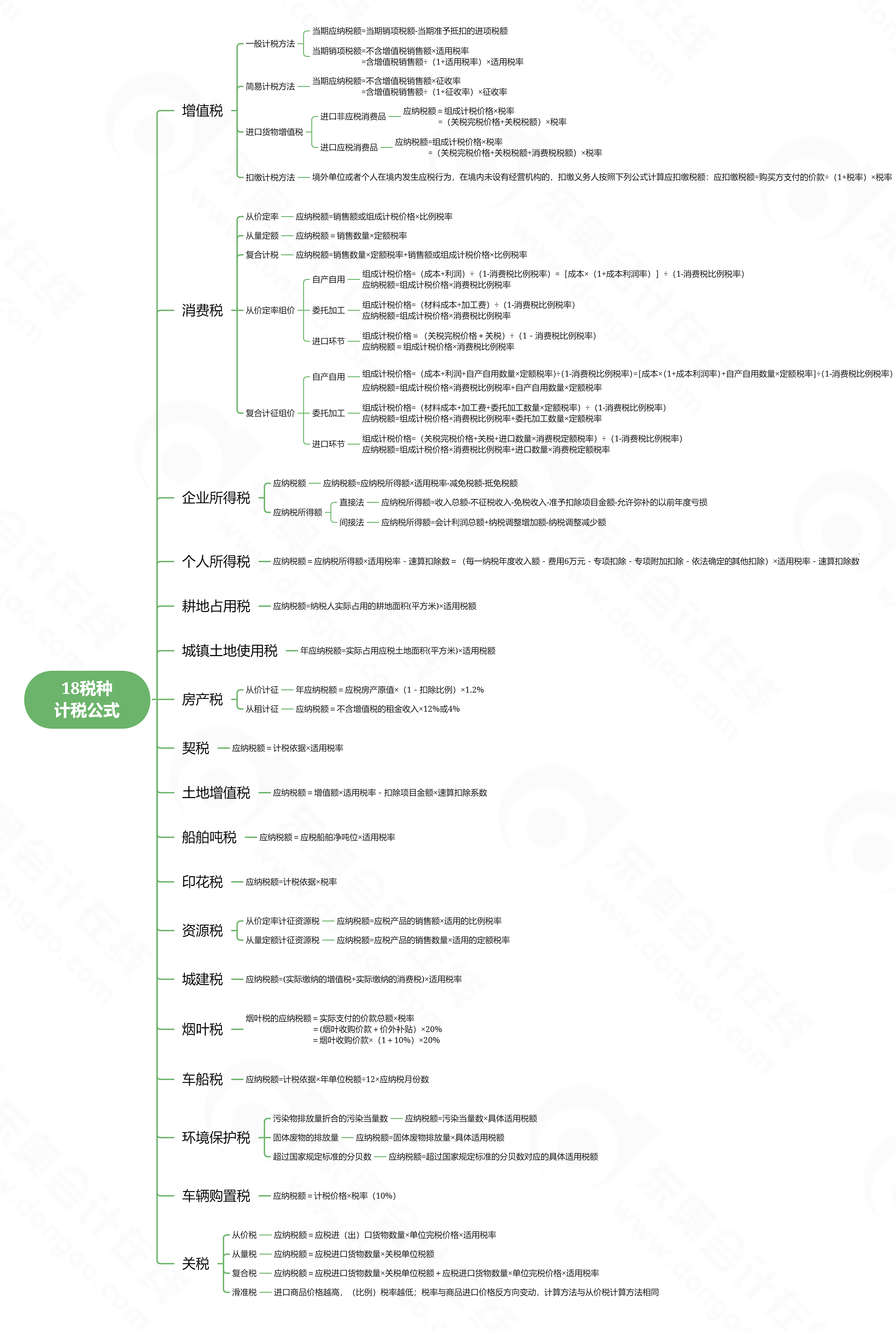 初級(jí)會(huì)計(jì)考試18稅種計(jì)稅公式思維導(dǎo)圖,速領(lǐng)!