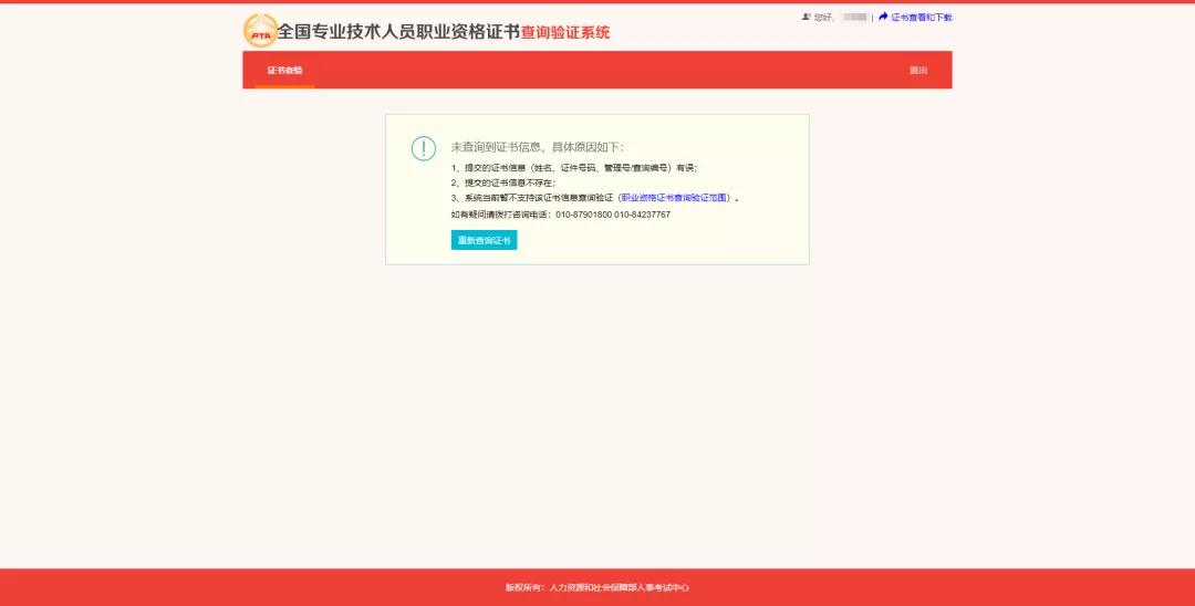 ①提交的證書信息(姓名、證件號碼、管理號/查詢編號)有誤。