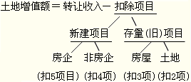 增值額=轉(zhuǎn)讓房地產(chǎn)取得的收入一扣除項(xiàng)目