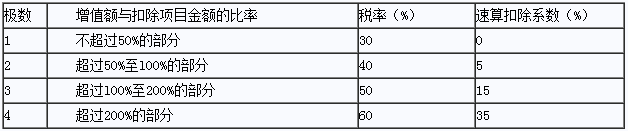 土地增值稅的稅率——實(shí)行四級(jí)超率累進(jìn)稅率