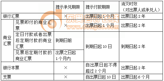 ③見票后定期付款的匯票:自出票之日起1個月內(nèi)提示承兌;