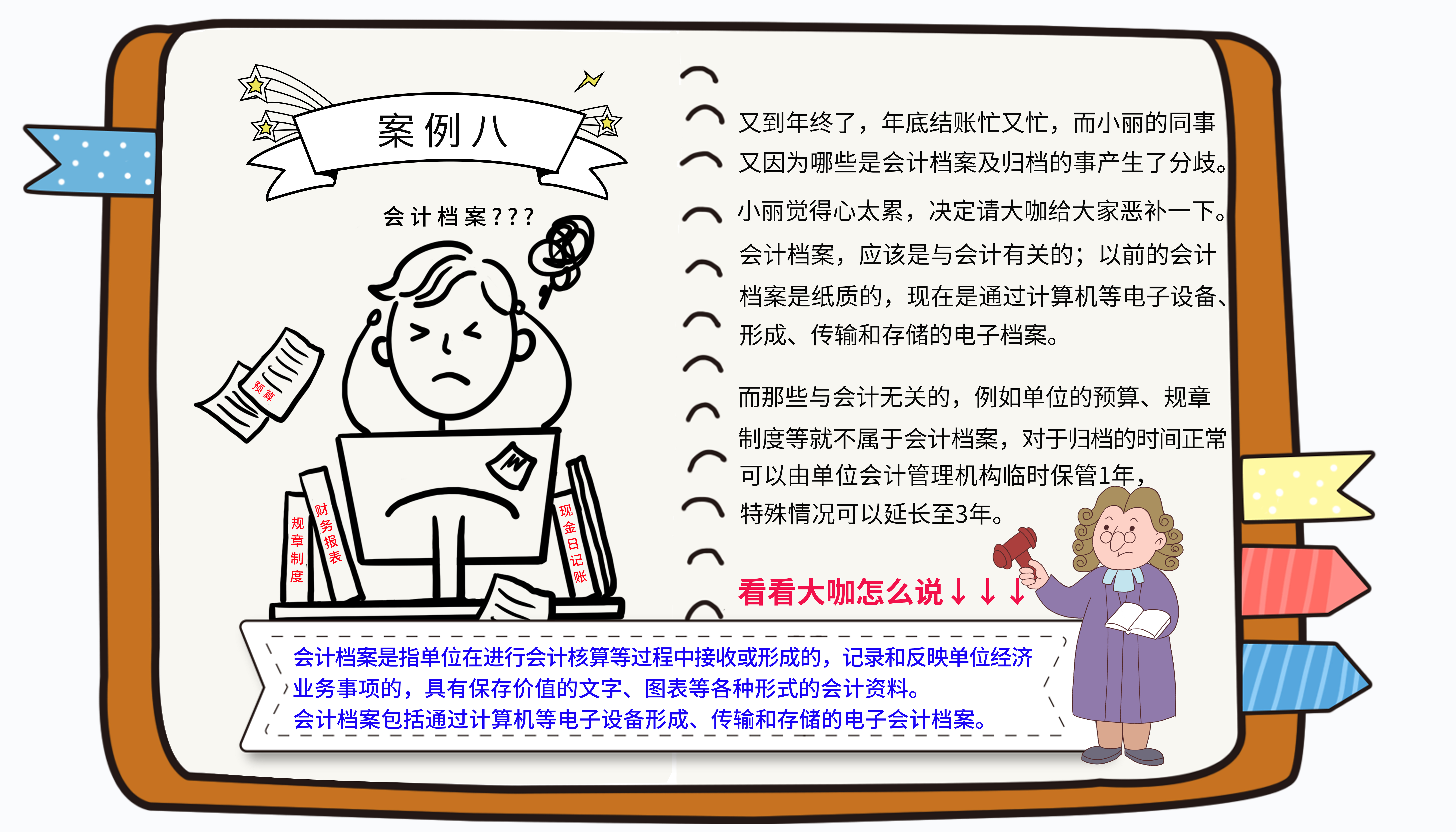 1.會計檔案是指單位在進行會計核算等過程中接收或形成的,記錄和反映單位經(jīng)濟業(yè)務事項的,具有保存價值的文字、圖表等各種形式的會計資料。