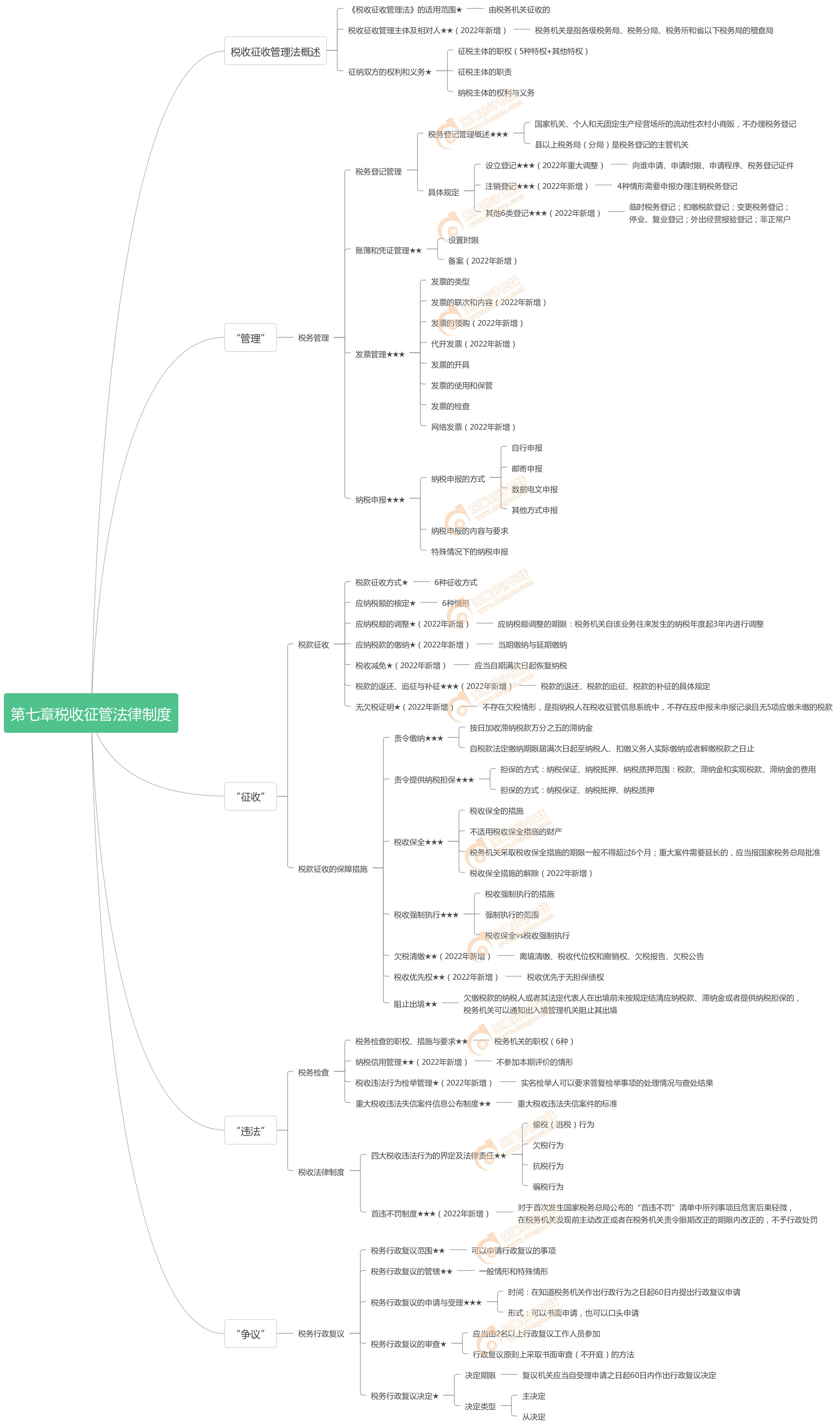 2022年初級會計《經(jīng)濟法基礎(chǔ)》第七章的考點發(fā)生了天翻地覆的變化,內(nèi)容增幅達50%,只有“第1單元稅收征收管理法概述”和“第7單元稅務(wù)行政復(fù)議”的內(nèi)容相對穩(wěn)定。因此大家要認真學(xué)習(xí)本章的內(nèi)容哦!以下是《經(jīng)濟法基礎(chǔ)》第七章思維導(dǎo)圖及章節(jié)練習(xí),趕緊來學(xué)習(xí)!