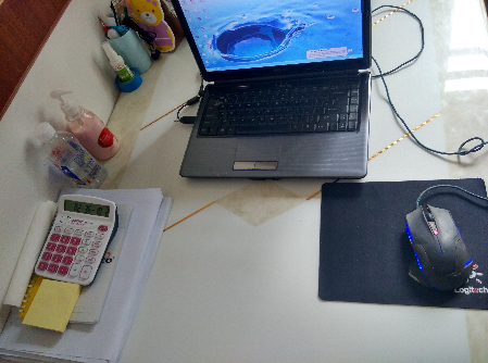 對了,請看我考完助會的書桌。