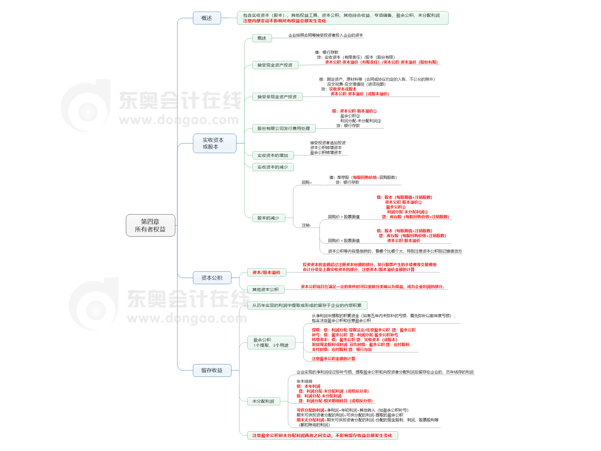 2020年《初級會計實務》強化階段學習導圖:第四章所有者權益
