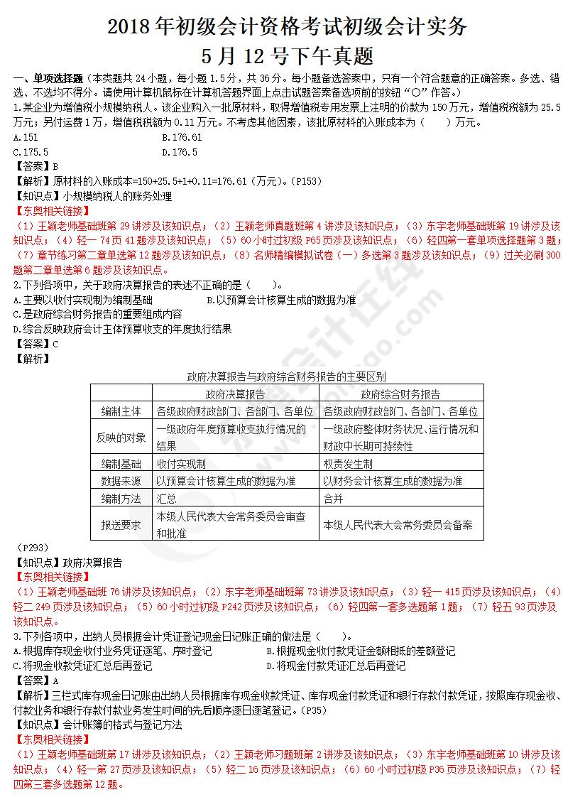 2018初級(jí)會(huì)計(jì)職稱(chēng)《初級(jí)會(huì)計(jì)實(shí)務(wù)》考試真題解析第二批次(考生回憶版)