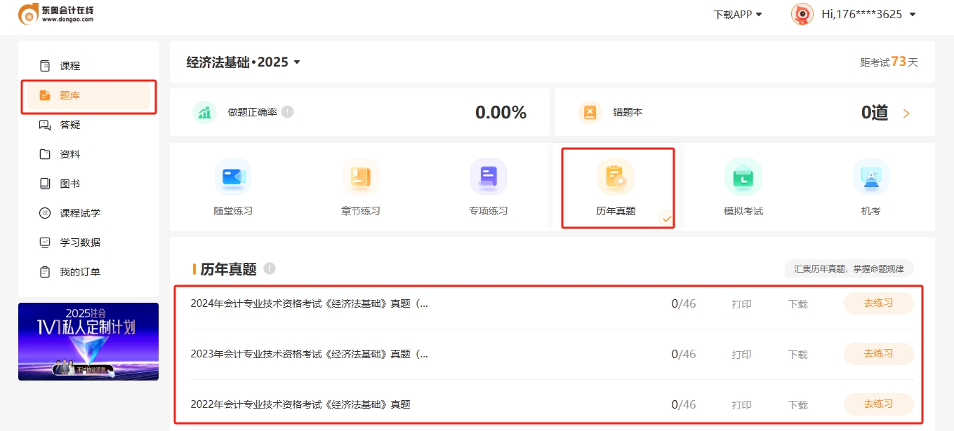 進入東奧初級會計頻道,進入學(xué)習(xí)中心,點擊「題庫」-「歷年真題」,即可開始練習(xí)。