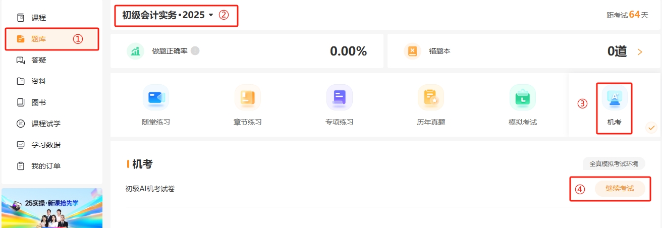 step2:點擊「題庫」-「機考」,即可開啟機考訓(xùn)練!