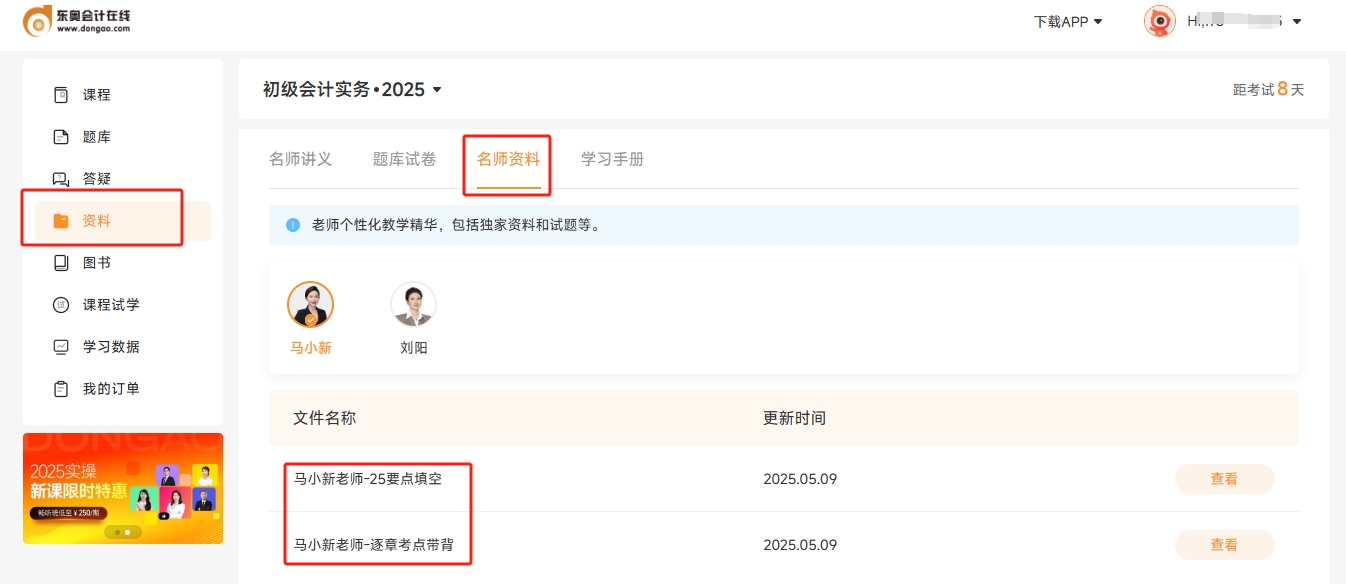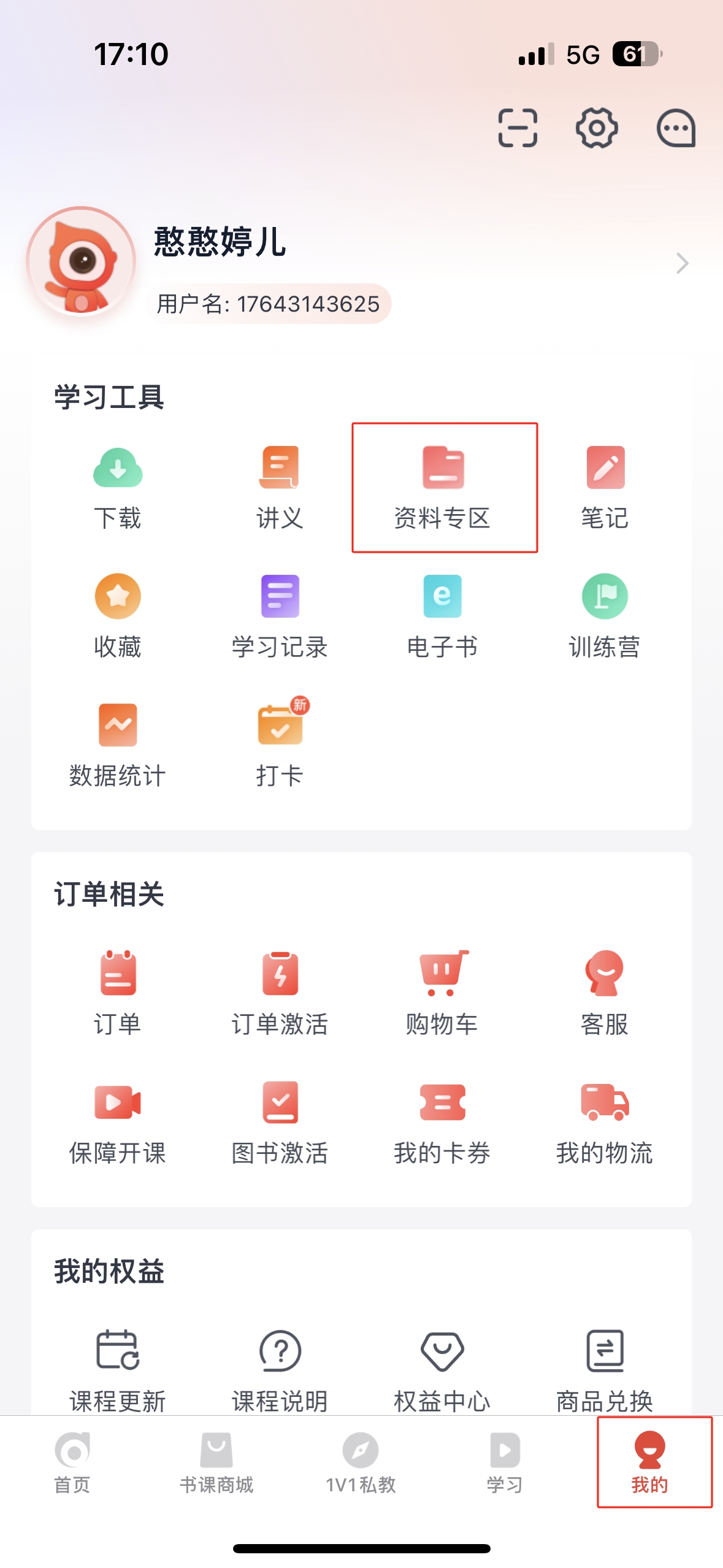 step3:打開會計云課堂APP,點擊右下角「我的」-「資料專區(qū)」-「名師資料」,即可查看資料。