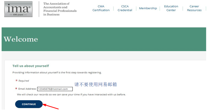 進(jìn)入歡迎頁(yè)面,填寫(xiě)您的“注冊(cè)郵箱”,點(diǎn)擊  “CONTINUE”