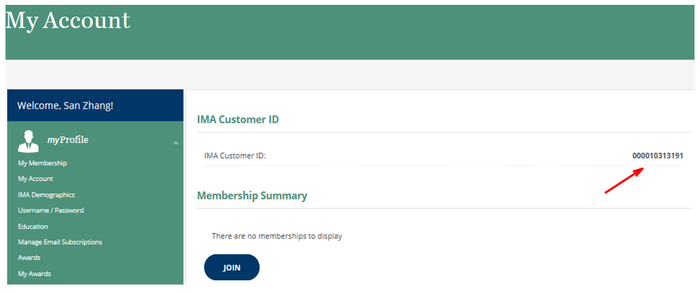 如需查詢(xún)您的IMA用戶(hù)編號(hào),請(qǐng)點(diǎn)擊“myProfile”  中的“My Account”