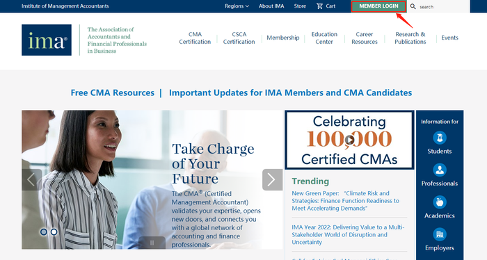 IMA英文官網(wǎng)網(wǎng)址:www.imanet.org,點(diǎn)擊“MEMBER LOGIN”