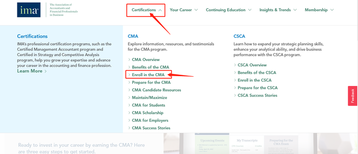 在登錄狀態(tài)下點(diǎn)擊頁(yè)面“Certification ”-“Enroll in the CMA”