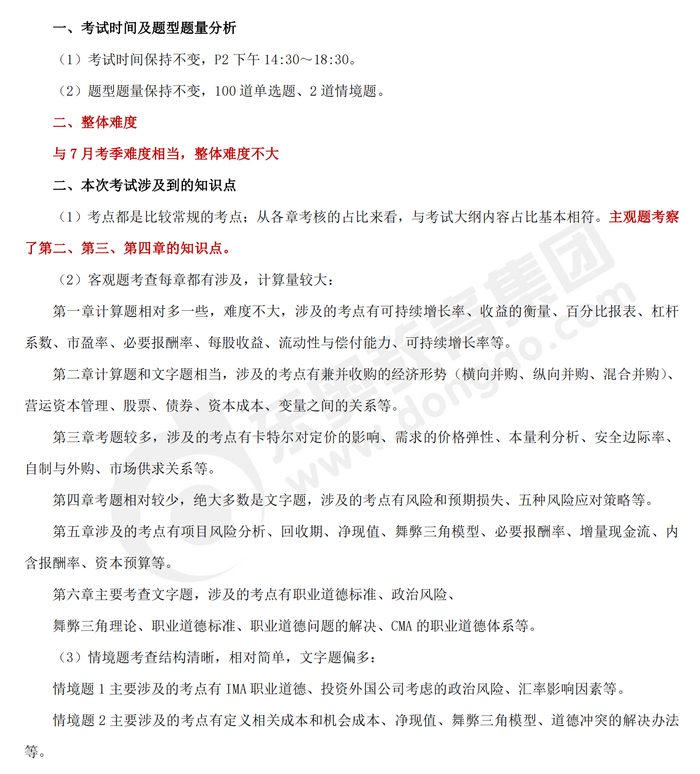 · 2022年11月12日CMA-P2科目考情分析 ·