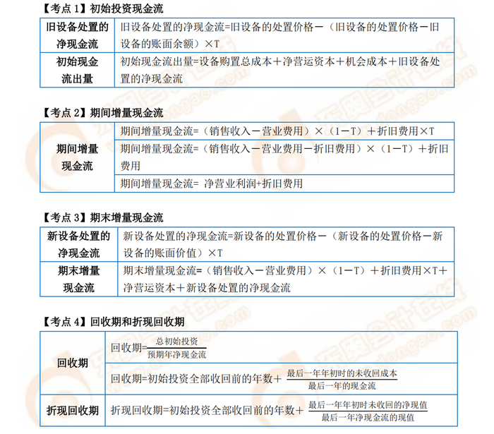 本章內(nèi)容主要圍繞現(xiàn)金流量折現(xiàn)分析展開,其中的重難點(diǎn)是理解兩種主要的現(xiàn)金流量折現(xiàn)法(凈現(xiàn)值和內(nèi)含報(bào)酬率),計(jì)算凈現(xiàn)值以及內(nèi)含報(bào)酬率、比較凈現(xiàn)值和內(nèi)含報(bào)酬率,著重比較各自的相對(duì)優(yōu)點(diǎn)和缺點(diǎn),尤其當(dāng)這兩種方法用于獨(dú)立或互斥項(xiàng)目的時(shí)候。本章的公式也主要集中在這一部分,因此,考生要注意理解比較凈現(xiàn)值(NPV)和內(nèi)含報(bào)酬率(IRR) 這兩種方法之間的區(qū)別,進(jìn)行對(duì)比記憶以加深印象。