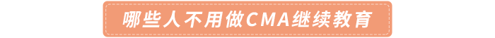 當(dāng)一名CMA持證者在一年內(nèi)完成了超過(guò)30個(gè)小時(shí)的持續(xù)教育,最多10個(gè)小時(shí)可被帶到下一年,如果當(dāng)年完成了超過(guò)2個(gè)小時(shí)職業(yè)道德方面的持續(xù)教育,那么最多能有2個(gè)小時(shí)的職業(yè)道德教育學(xué)時(shí)能夠被帶到下一年。