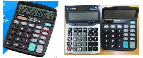 僅限六項(xiàng)功能的電池供電(或太陽能+電池雙供電)的計(jì)算器。六項(xiàng)功能指加、減、乘、除、平方根和百分比。(下圖為部分計(jì)算器參考)
