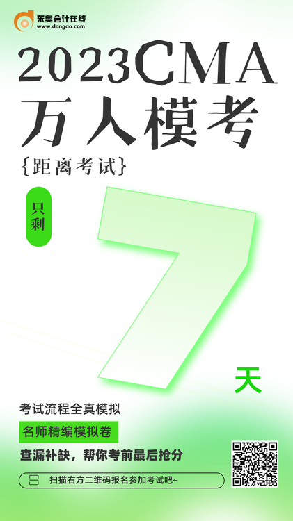 期待大家的精彩表現(xiàn),預(yù)祝大家在4月8日的正式考試中能夠順利度過!想獲取更多有關(guān)cma考試等相關(guān)內(nèi)容,請持續(xù)關(guān)注東奧會計在線cma頻道。