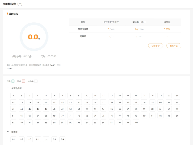 1.考試結(jié)束后,提交試卷,系統(tǒng)自動生成答案詳解和客觀題分?jǐn)?shù)
