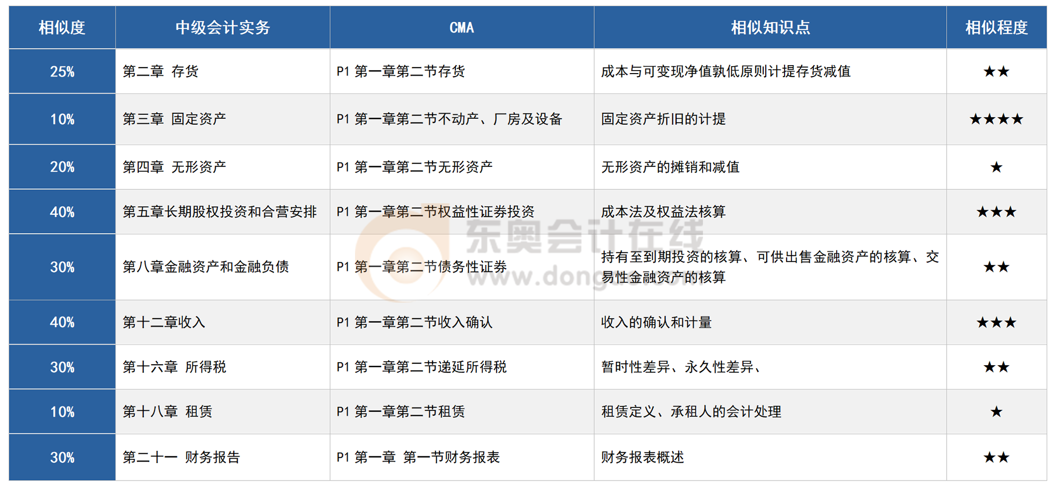 中級(jí)會(huì)計(jì)和cma考試內(nèi)容相似度如何