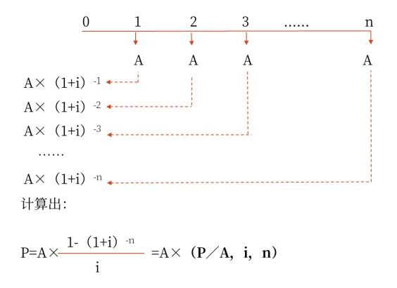 普通年金現(xiàn)值,是指一定時期內(nèi)每期期末等額收付款項的復(fù)利現(xiàn)值之和。普通年金現(xiàn)值的計算實際上就是已知年金A,求普通年金現(xiàn)值P。