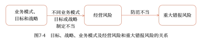 目標(biāo)、戰(zhàn)略、業(yè)務(wù)模式及經(jīng)營風(fēng)險(xiǎn)和重大錯報(bào)風(fēng)險(xiǎn)的關(guān)系,如圖7-4所示: