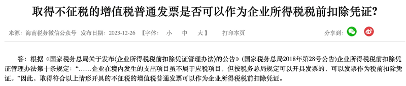【思考】不征稅發(fā)票能否進行企業(yè)所得稅稅前扣除?