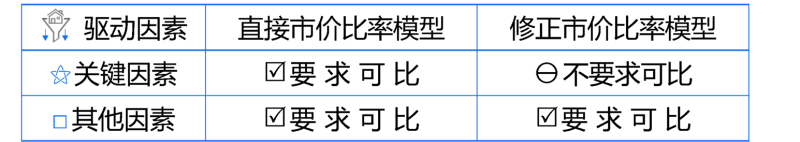 修正的市價(jià)比率因?yàn)闀﹃P(guān)鍵驅(qū)動因素進(jìn)行修正,所以關(guān)鍵驅(qū)動因素可以不可比。
