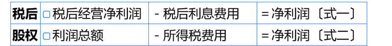息稅前利潤(rùn)-利息費(fèi)用=利潤(rùn)總額(稅前利潤(rùn))———這個(gè)公式中的利息費(fèi)用是狹義利息費(fèi)用,即財(cái)務(wù)費(fèi)用