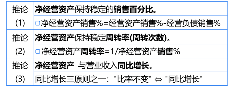 您看哈,凈經(jīng)營(yíng)資產(chǎn)銷(xiāo)售百分比=經(jīng)營(yíng)資產(chǎn)銷(xiāo)售百分比-經(jīng)營(yíng)負(fù)債銷(xiāo)售百分比=0.6-0.2=0.4,推論一正確——這是推論一。